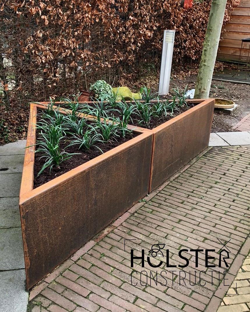 Bij Holster Constructie werken we dagelijks met dit unieke materiaal. Van strakke plantenbakken en kunstobjecten tot gevelbekleding en poorten: elk project krijgt die kenmerkende warme, industriële uitstraling van cortenstaal.